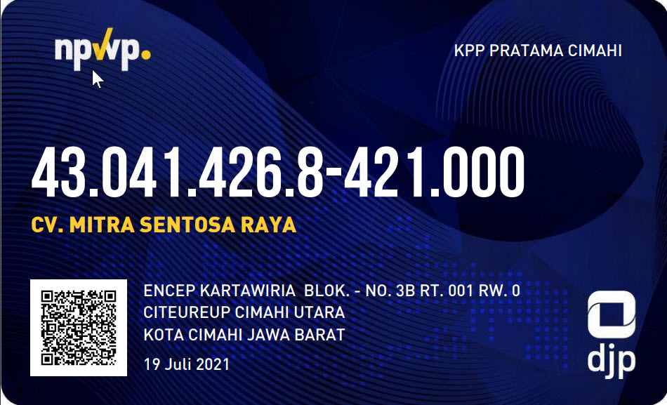 | Nama Badan Hukum | CV. MITRA SENTOSA RAYA | |